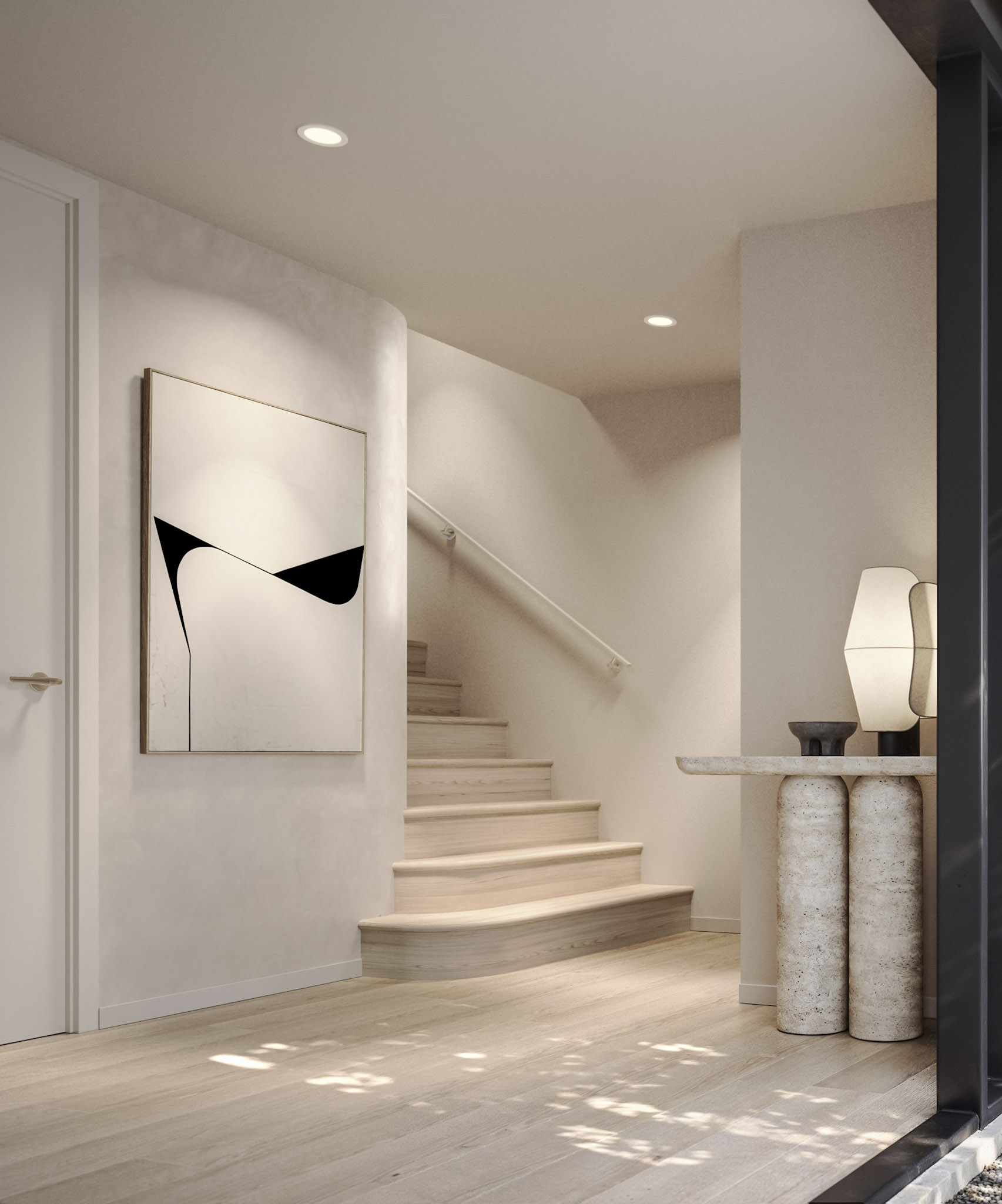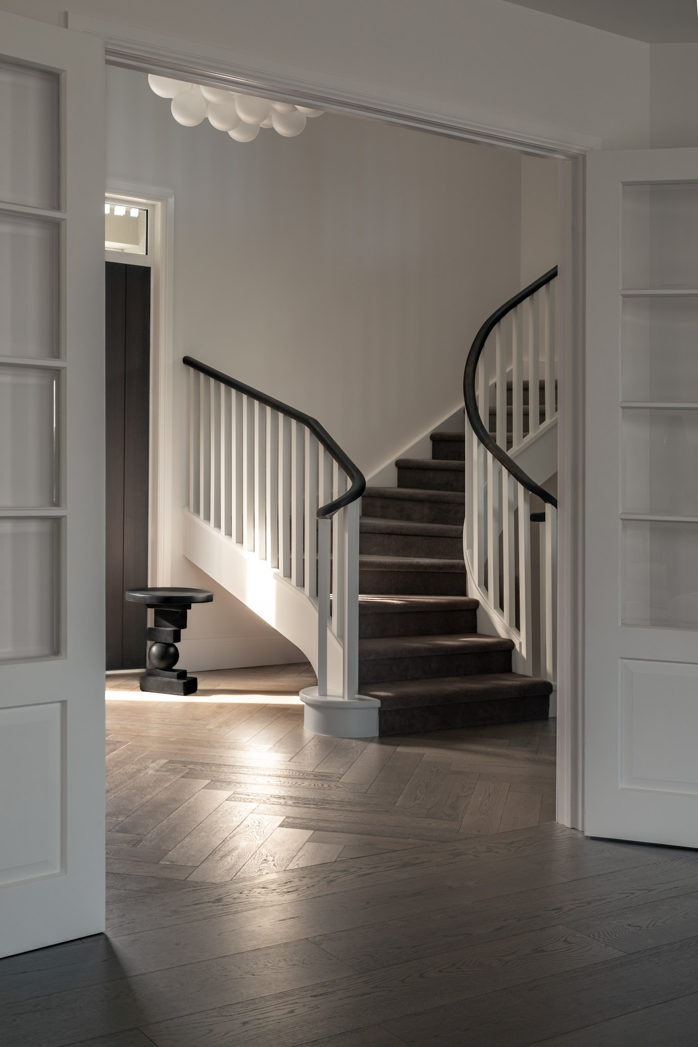 A reinvented 1940’s bungalow into an opulent family haven. Drawing from the era's grandeur, it showcases arches, chevron floors, and natural stone accents, all within a striking black and white palette. A meticulous four-month renovation seamlessly blends modern refinement with timeless Art Deco allure.